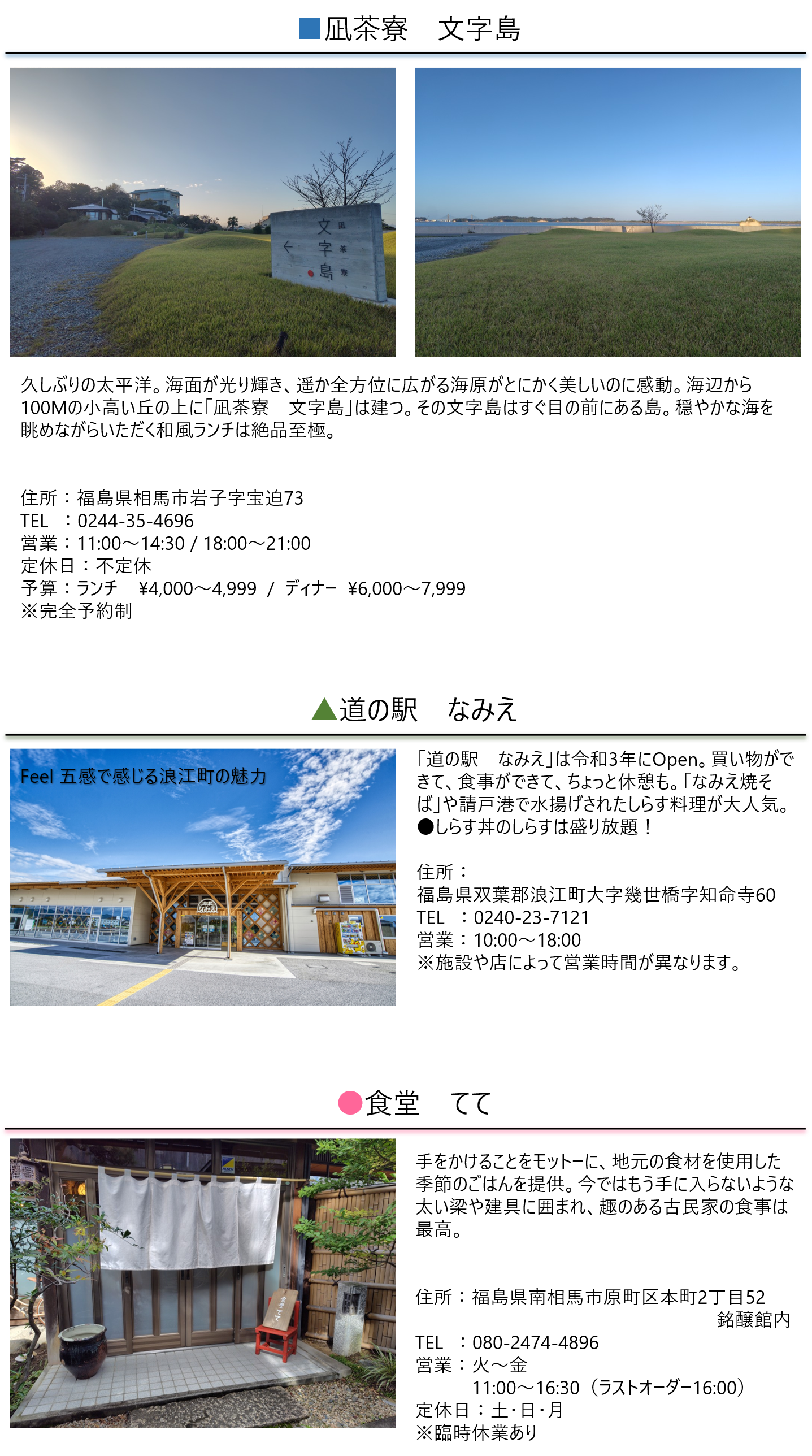 ホテル72館からのお知らせ No.3 今月のお勧めスポット ”そうだ 海を見に相馬に行ってみよう!”Posted on 投稿日: 2025年10月30日更新日: 2025年10月30日 ■相馬は馬追いだけじゃない!穏やかで美しい海と美食がある!若い元気な居住者達が新しい発想で活躍中! 記事一覧